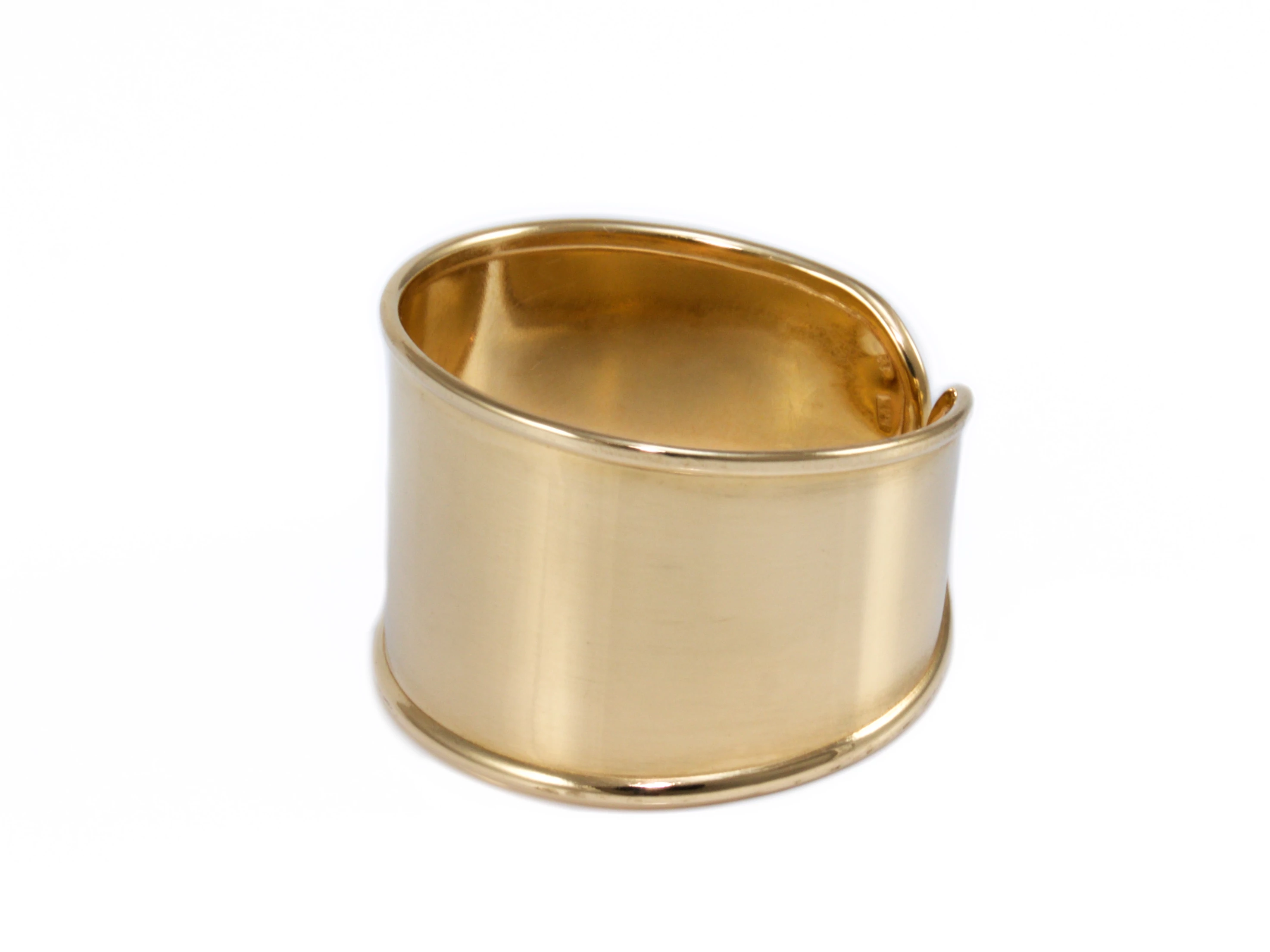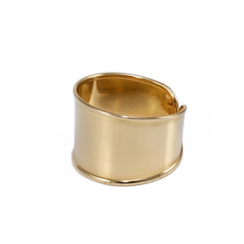 Modern stílusú, alul nyitott, fényes, könnyű súlya ellenére igen mutatós arany palástgyűrű.