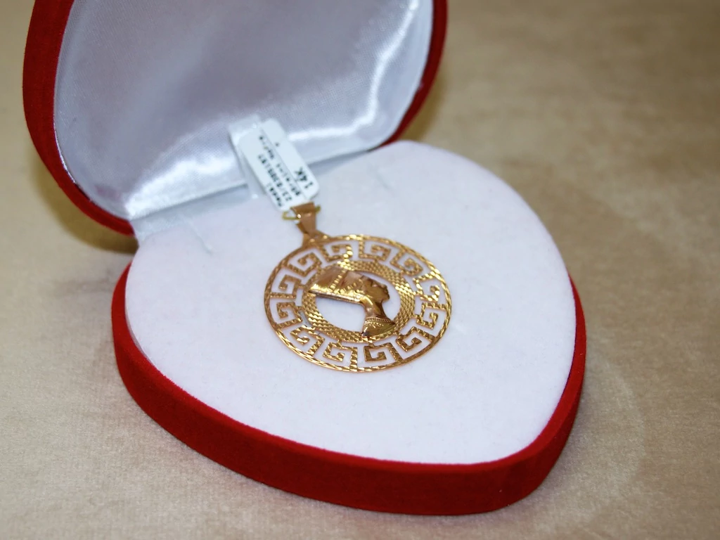 Felújított arany görög mintás Nofretiti medál