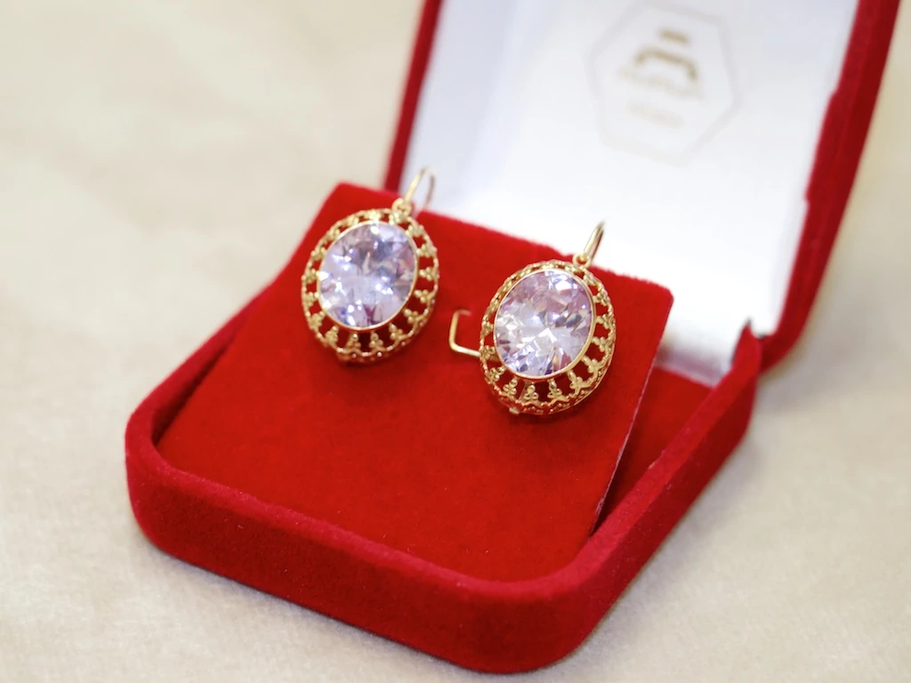 Felújított arany lila köves fülbevaló
