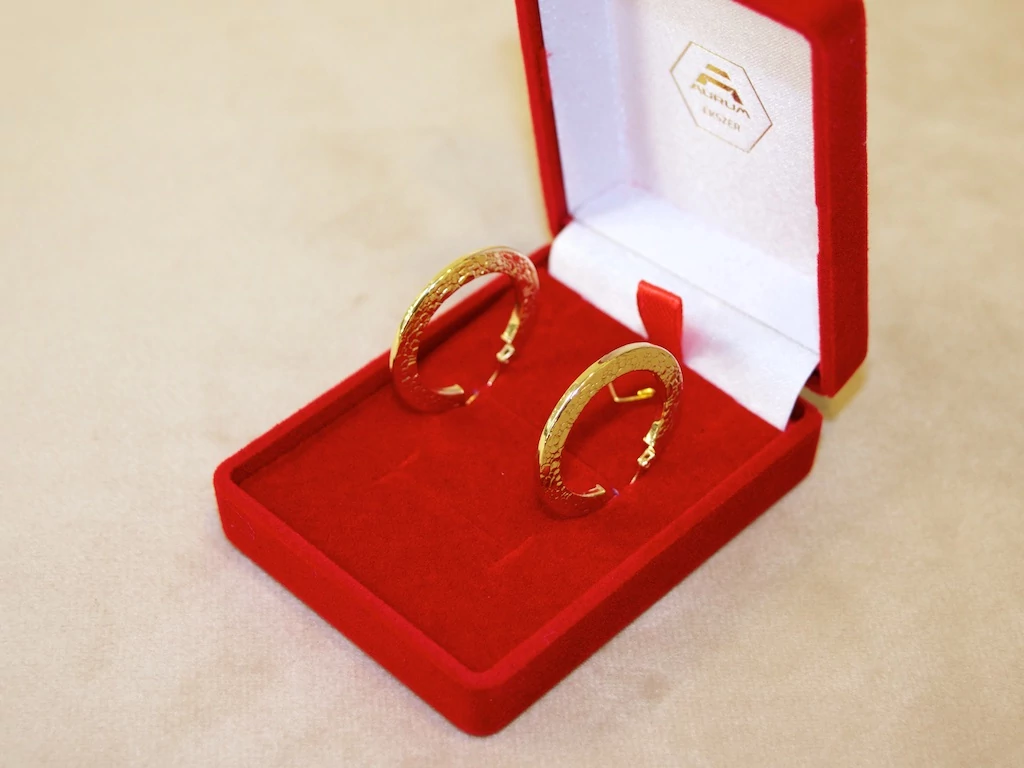 Felújított arany mintás karika fülbevaló