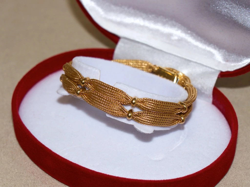 Felújított arany szőtt 2 soros fantázia karlánc