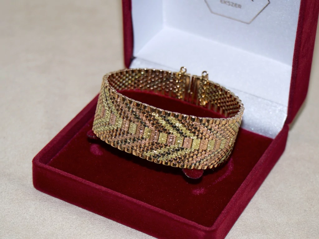 Felújított arany tricolor széles karlánc