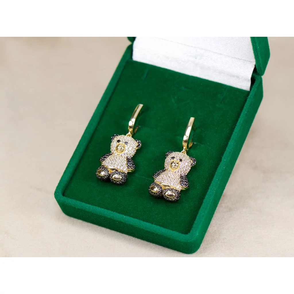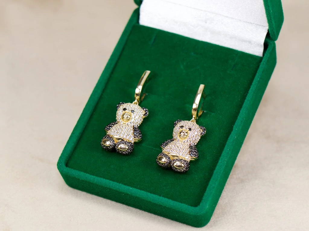 Felújított fekete fehér köves sárga arany macis fülbevaló