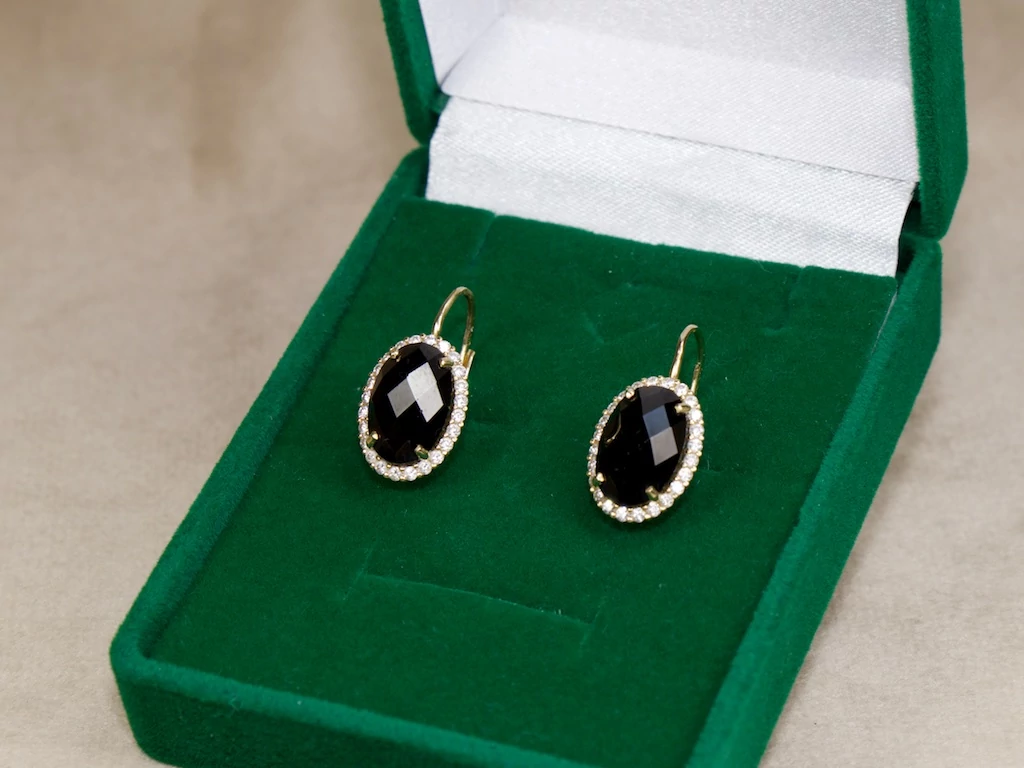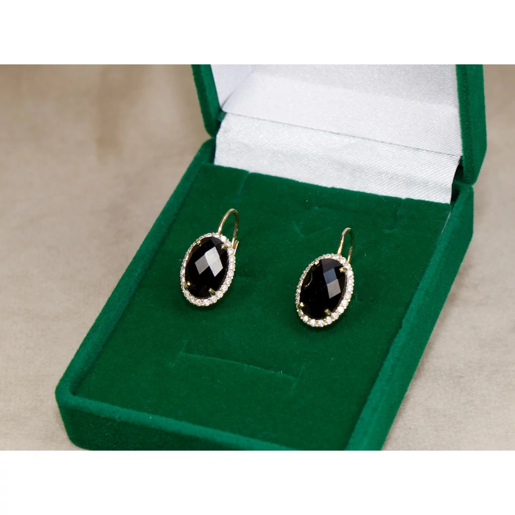 Felújított fekete köves arany fülbevaló cirkónia kövekkel