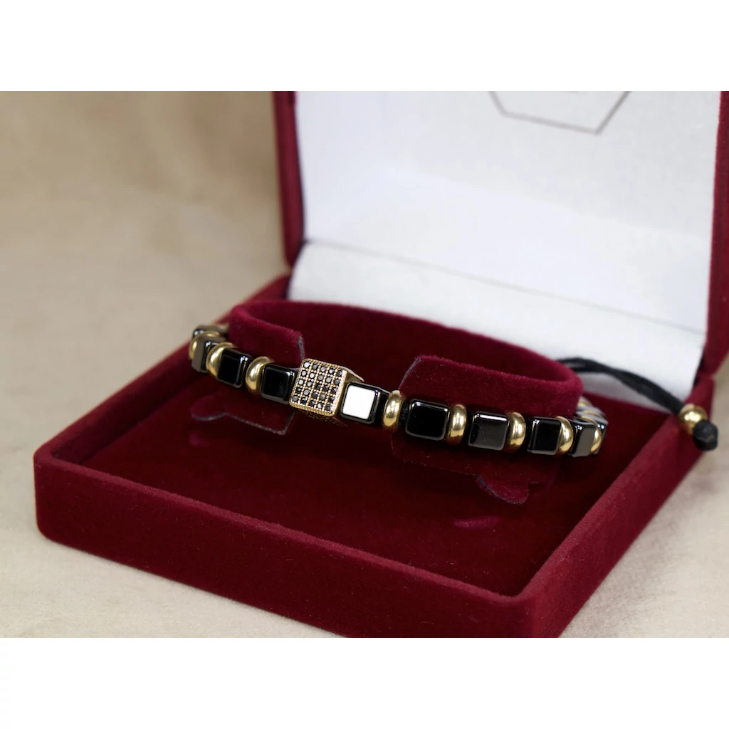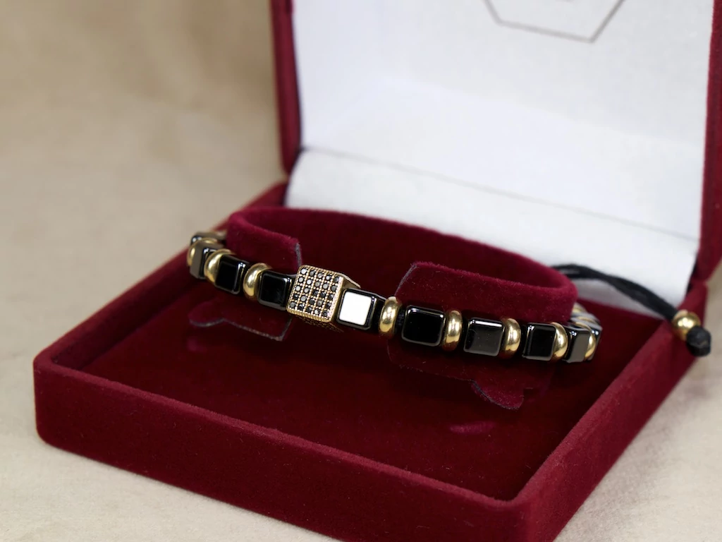 Felújított fekete köves arany órakísérő hematit kockákkal