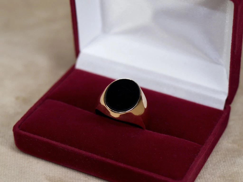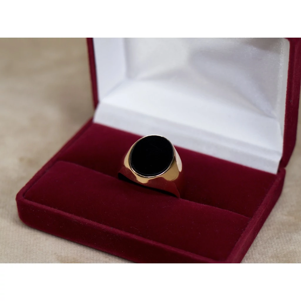 Felújított fekete köves ovális arany pecsétgyűrű