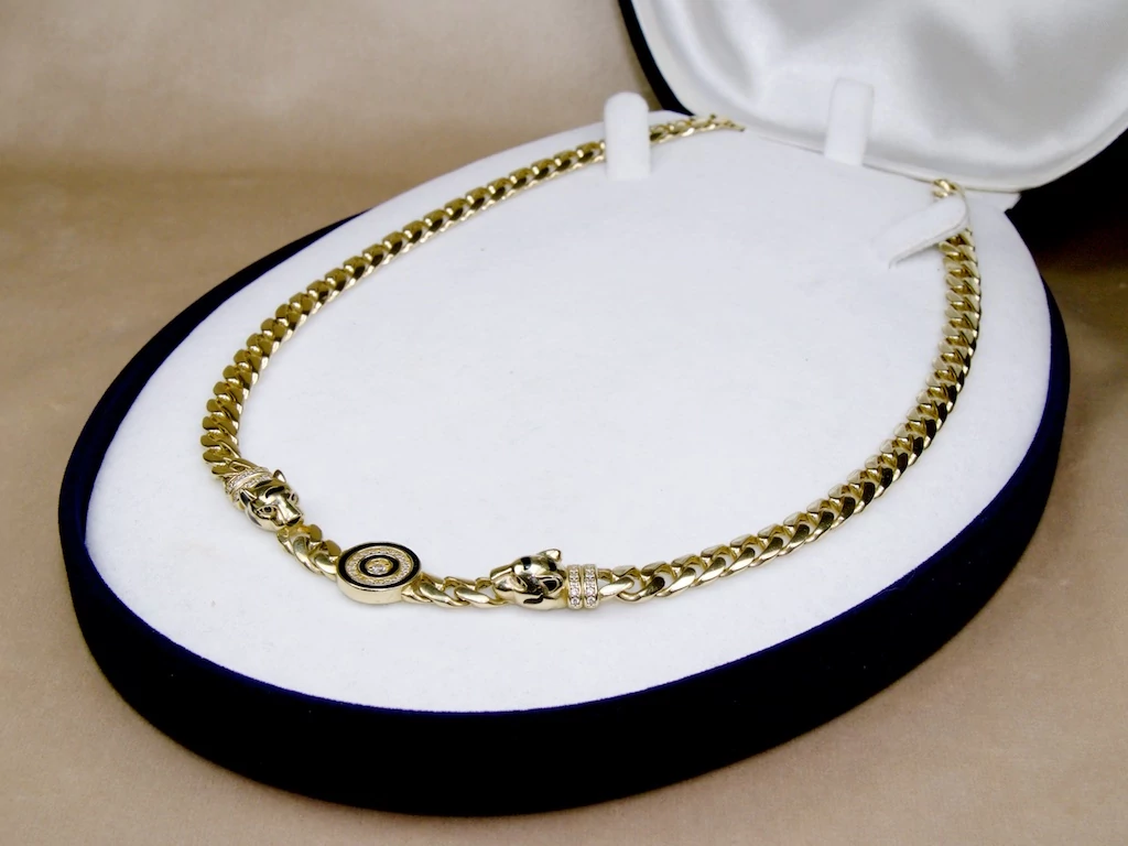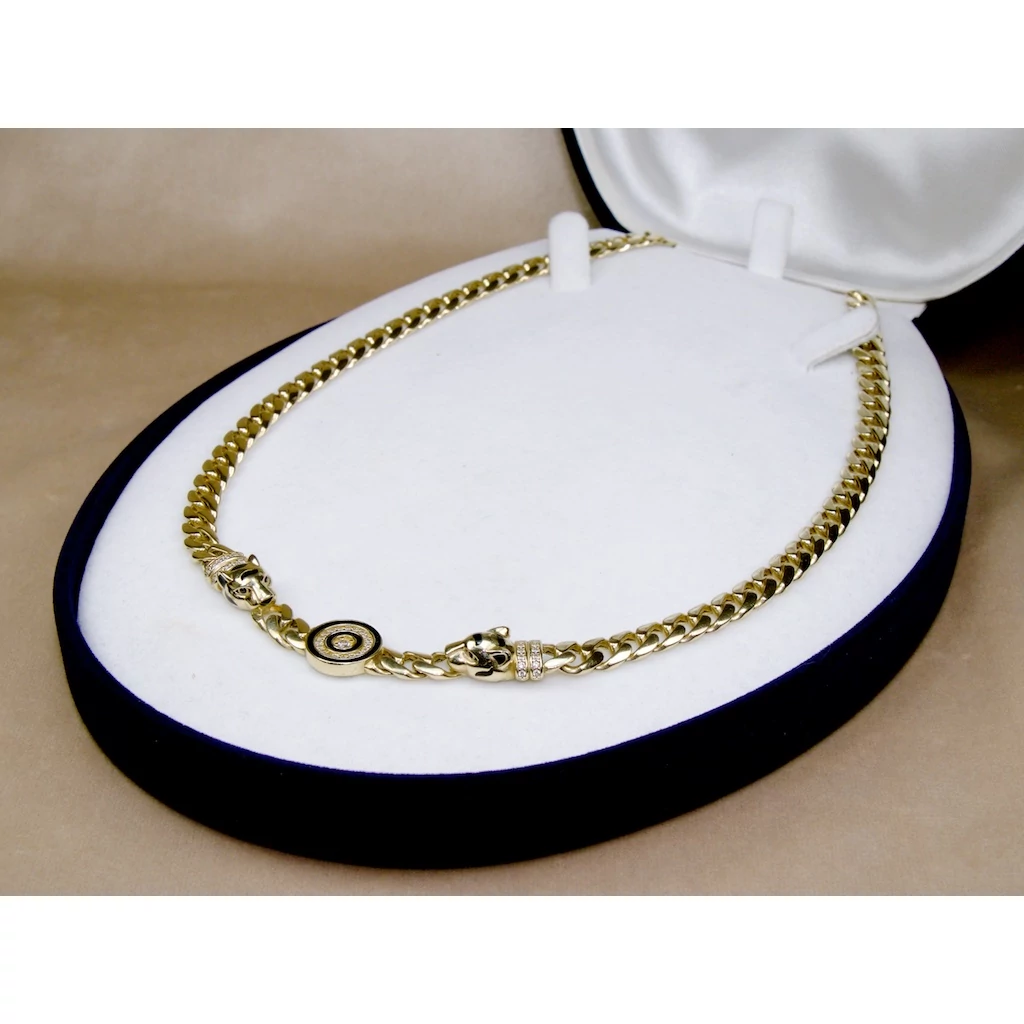 Felújított köves párducos sárga arany lánc