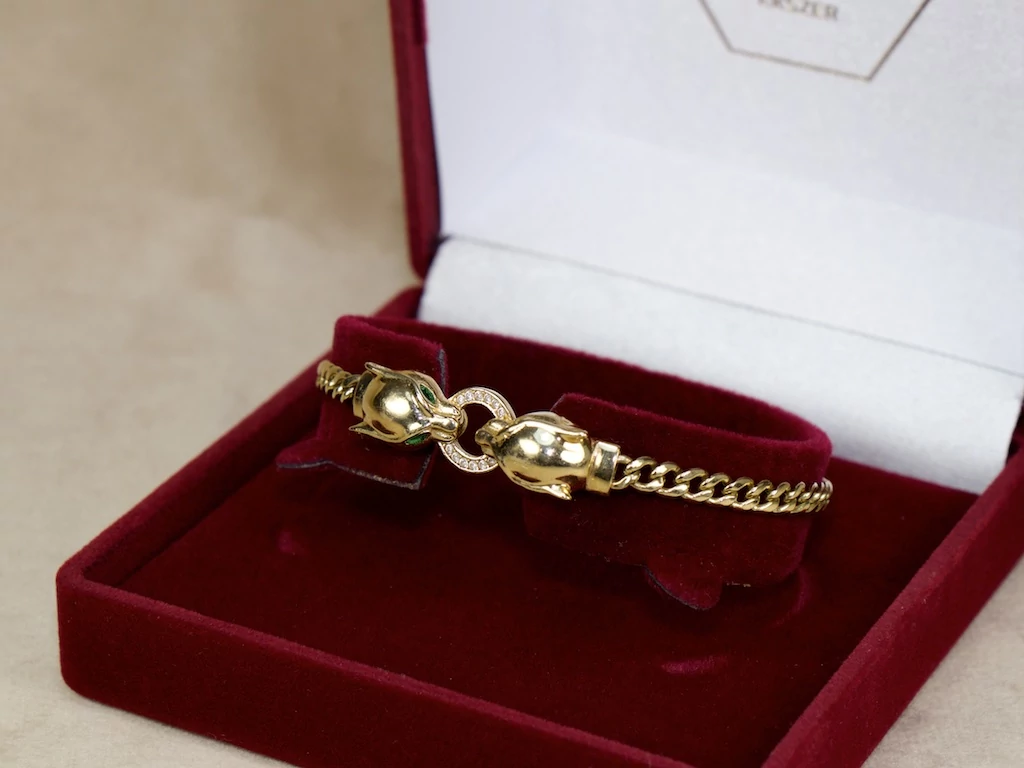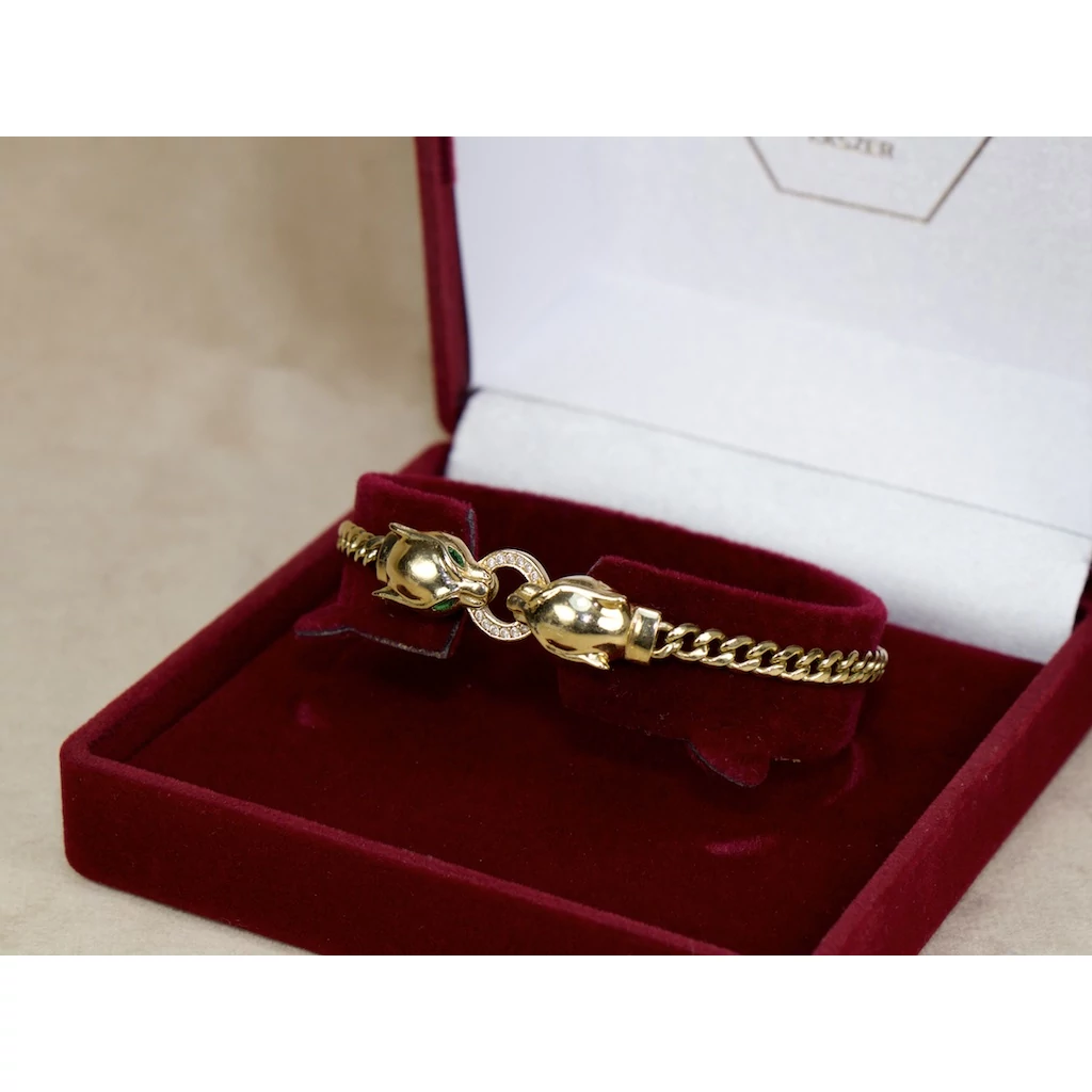 Felújított köves párducos sárga arany pancer karlánc