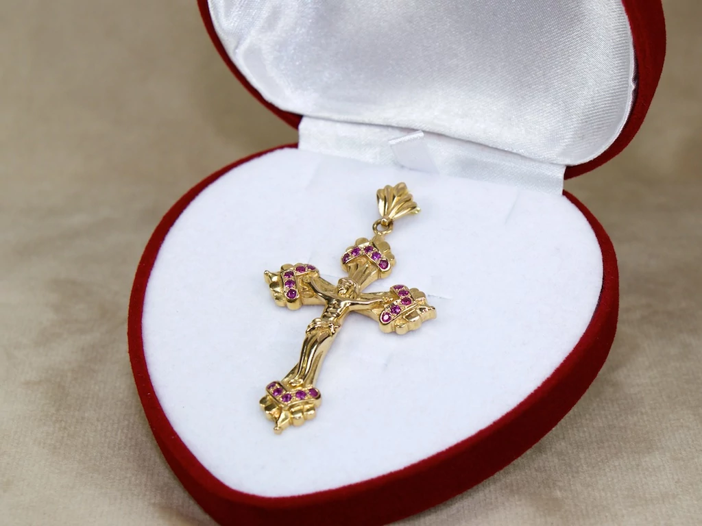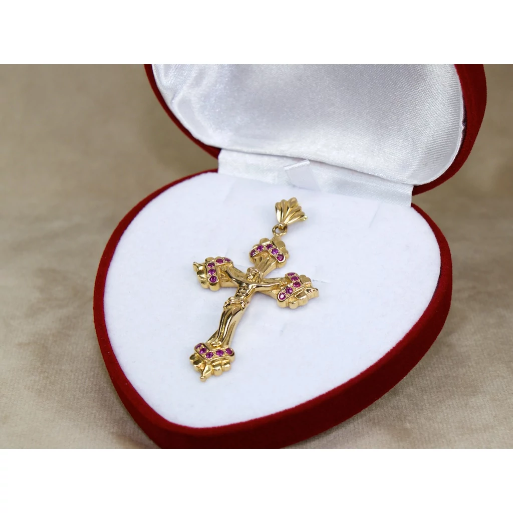 Felújított piros köves arany feszület medál