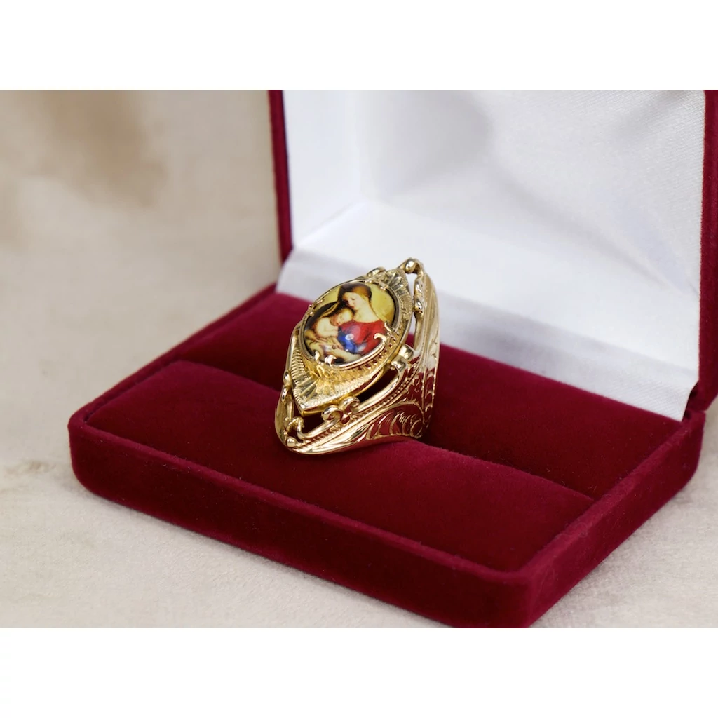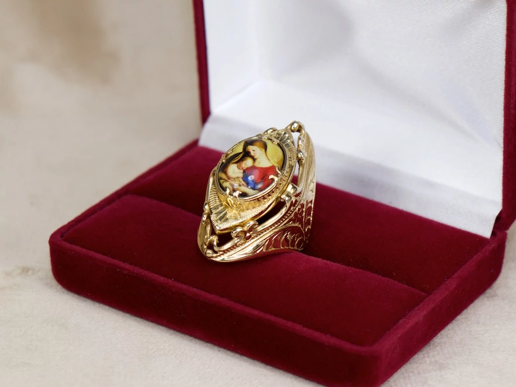 Felújított sárga arany Szűz Máriás áttört, vésett gyűrű
