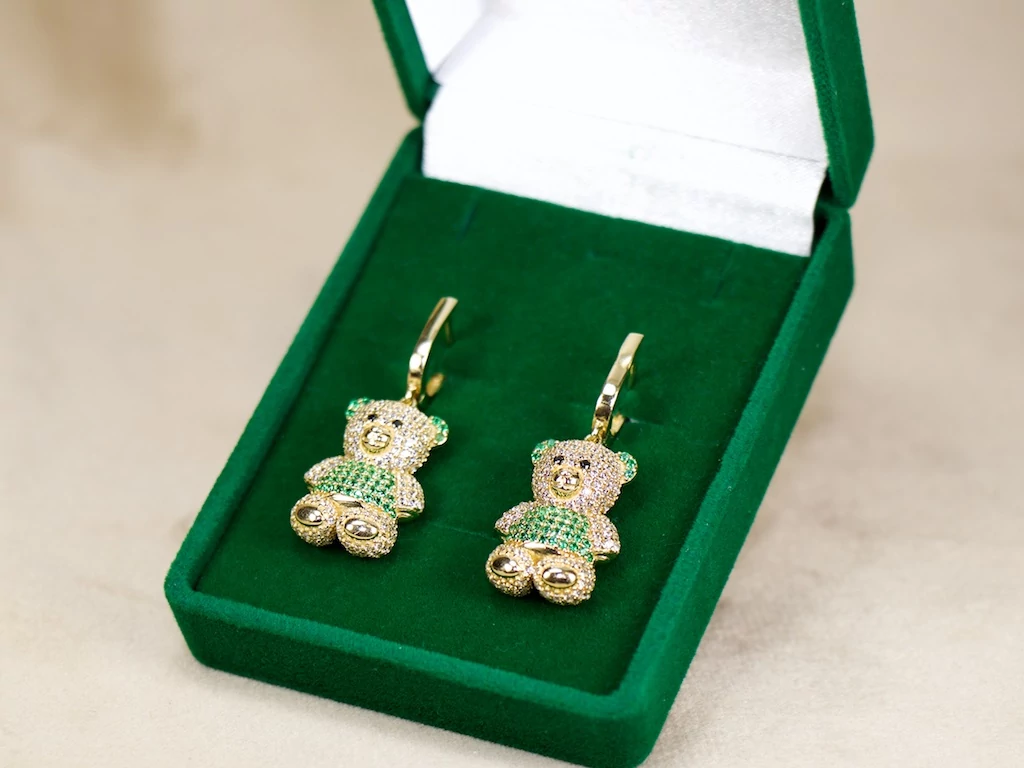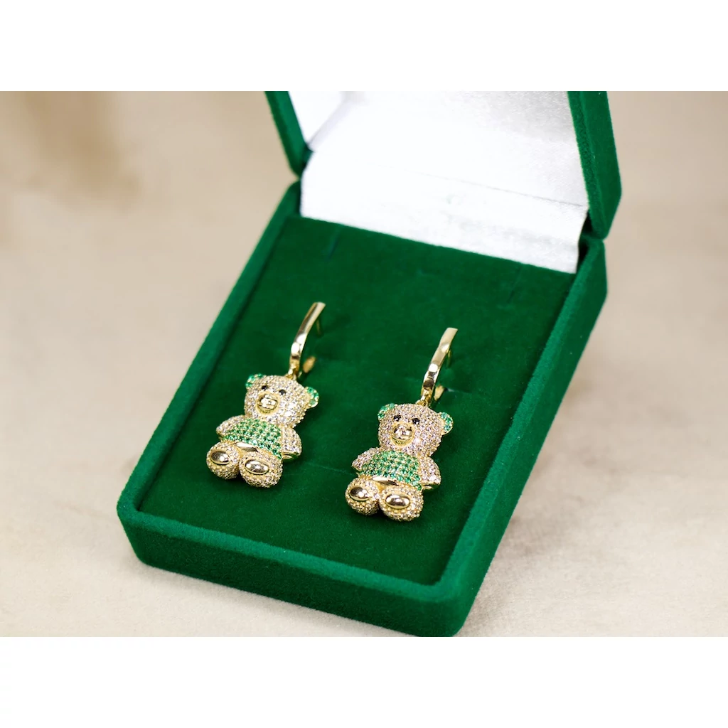 Felújított zöld fehér köves sárga arany macis fülbevaló