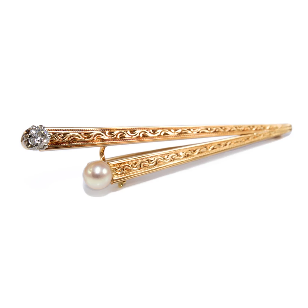 Gyémánt köves gyöngyös arany kitűző