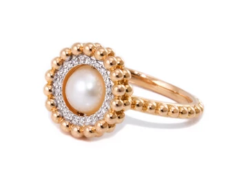 Bicolor gyöngyös-gyémántos arany gyűrű
