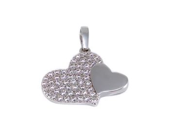 Köves dupla szív fehérarany medál