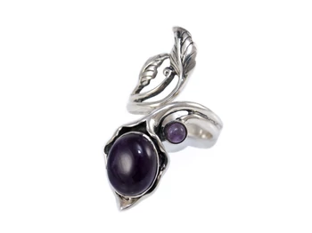 Ametiszt köves antikolt leveles ezüst gyűrű