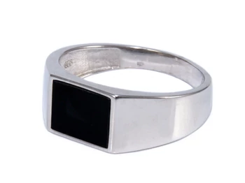 Szögletes fekete köves ezüst pecsétgyűrű