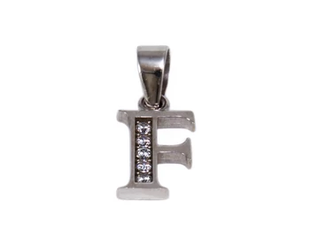 Köves fehérarany F betű medál