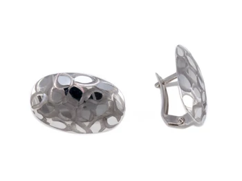 Ovális matt mintás fehérarany lemez fülbevaló
