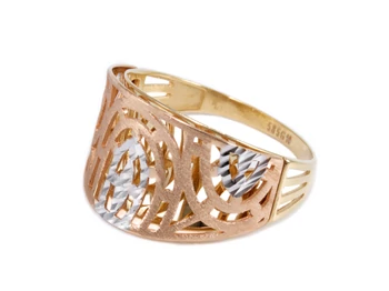 Tricolor vésett matt áttört arany gyűrű