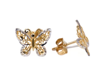 Bicolor vésett és áttört mintás pillangó bedugós arany fülbevaló