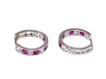 Rózsaszín-fehér köves karika fehérarany fülbevaló