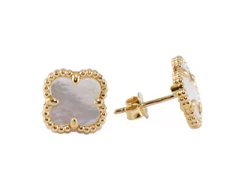 Gyöngyházas arany lóhere fülbevaló
