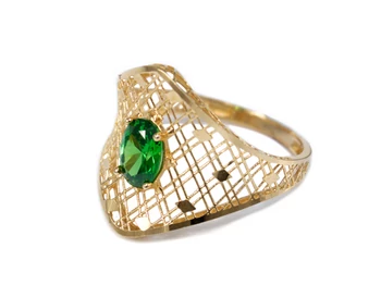 Zöld köves áttört arany koktélgyűrű