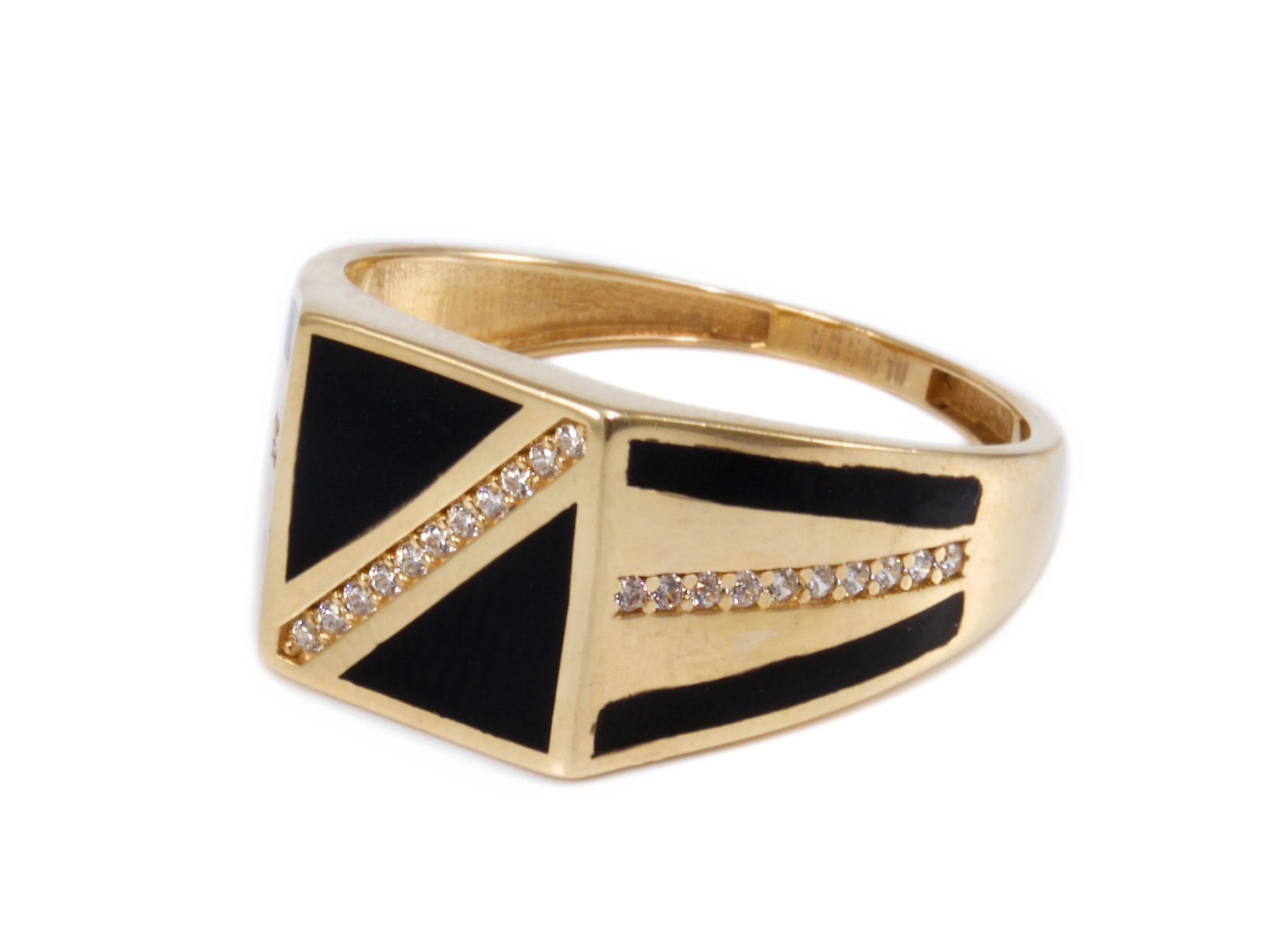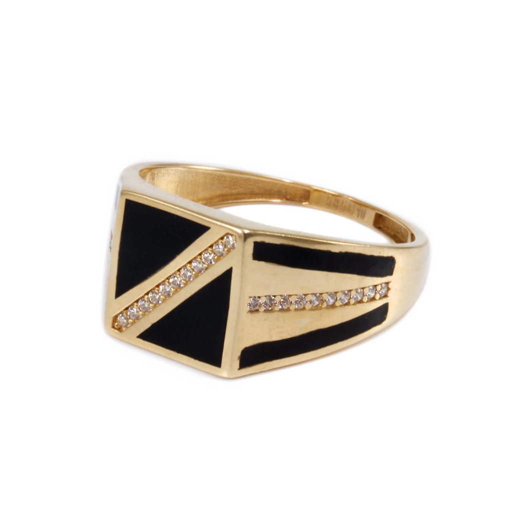 Fekete zománcos-fehér köves arany pecsétgyűrű