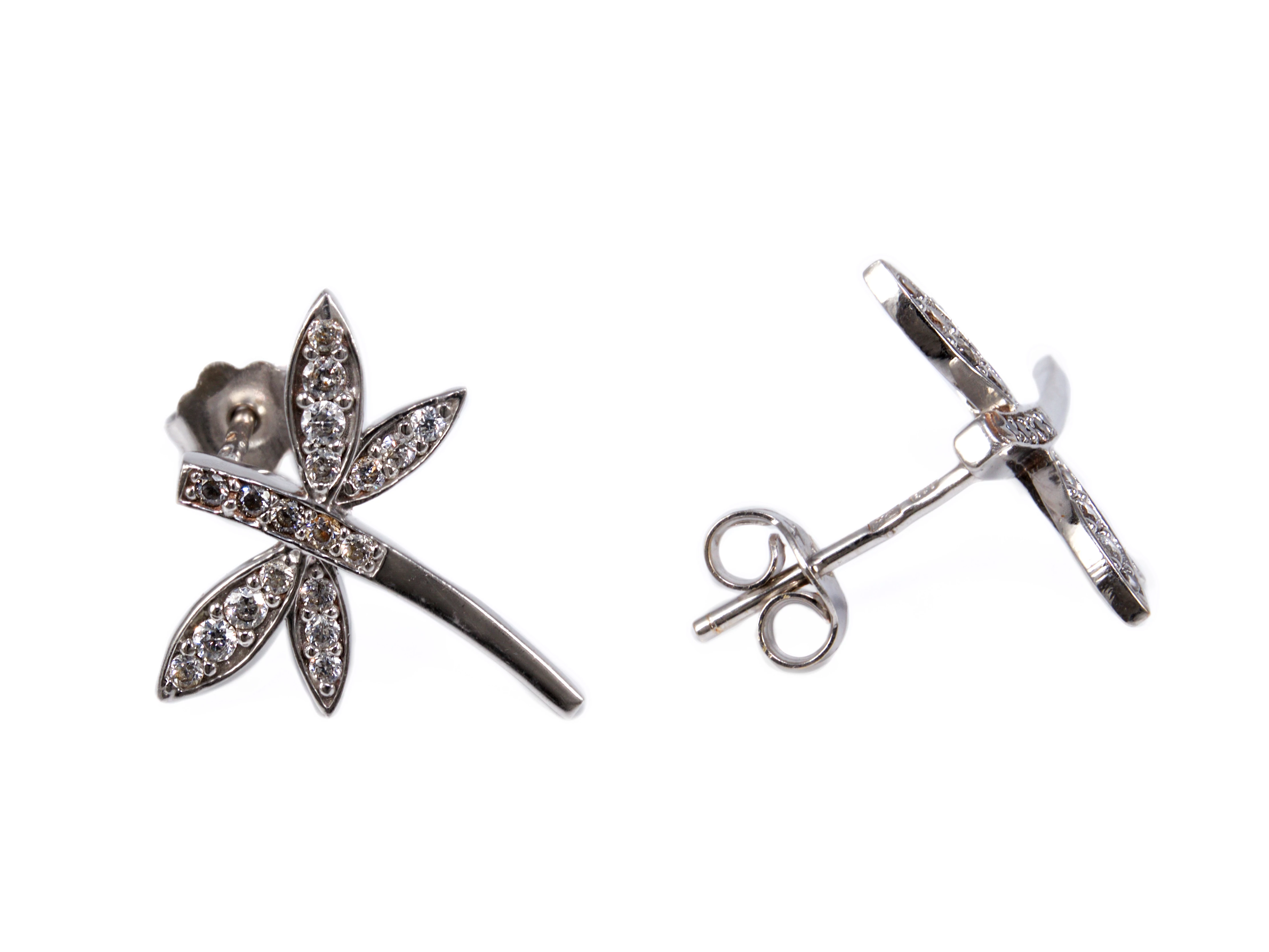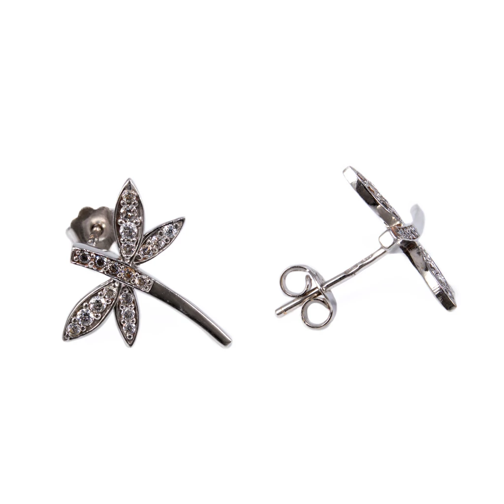 Köves szitakötő fehérarany fülbevaló