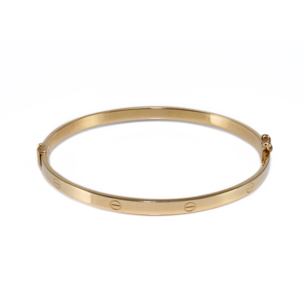 Modern stílusú, kedvelt fazonú, szögletes profilú, mintás arany karperec.