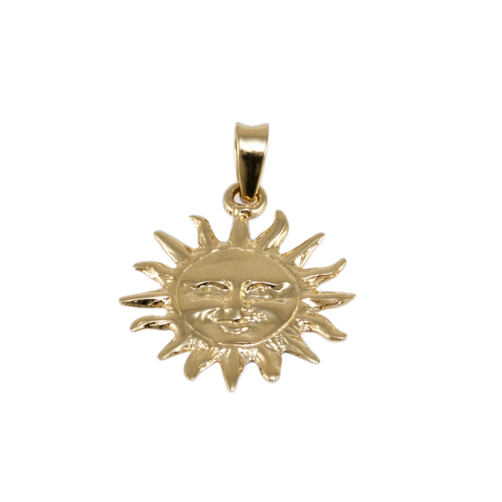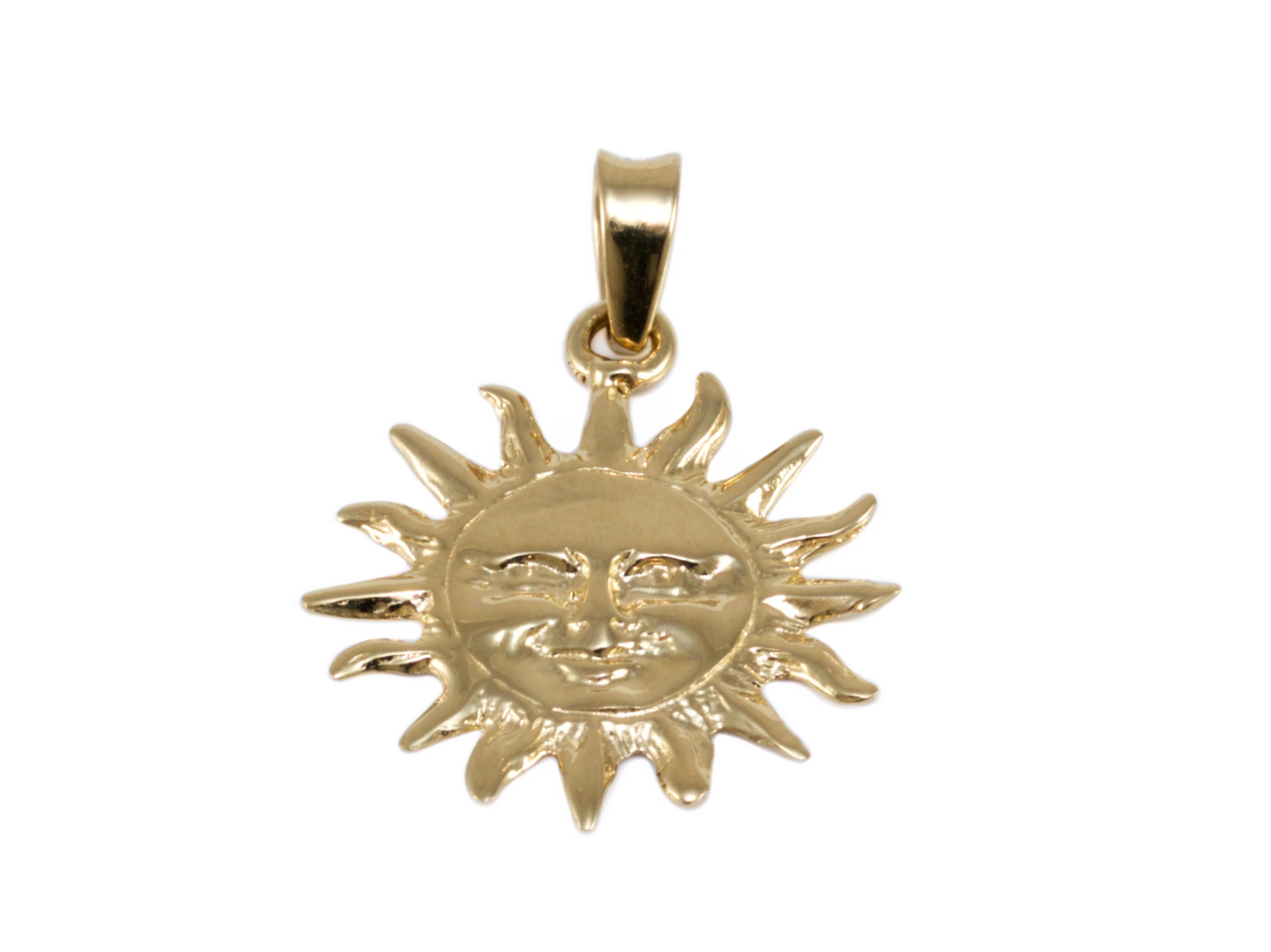 Modern stílusú, fényes, masszív kialakítású, napot ábrázoló arany medál.