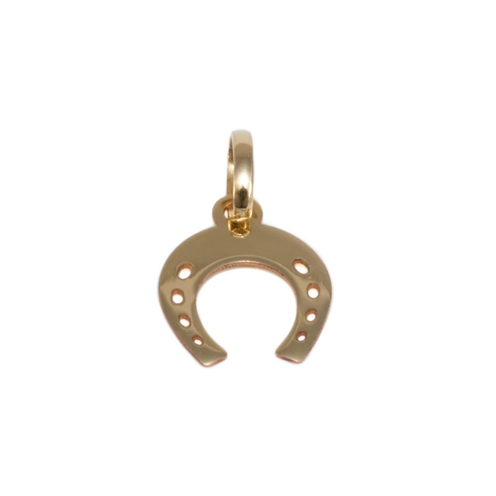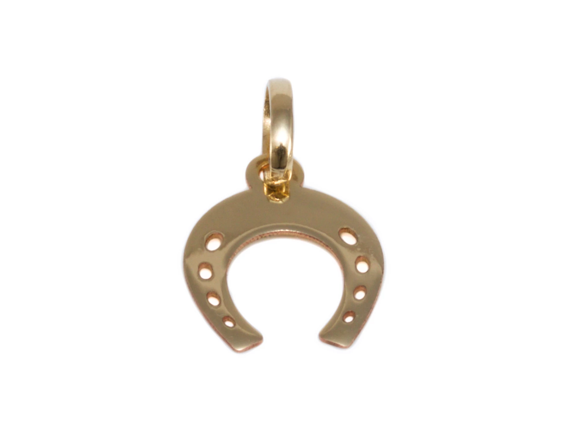 Klasszikus és kedvelt fazonú, áttört kialakítású, lapszerű arany patkó medál.