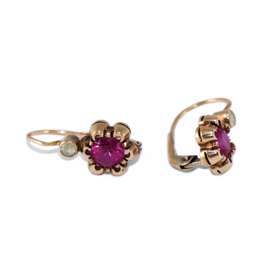 Piros - fehér köves arany fülbevaló