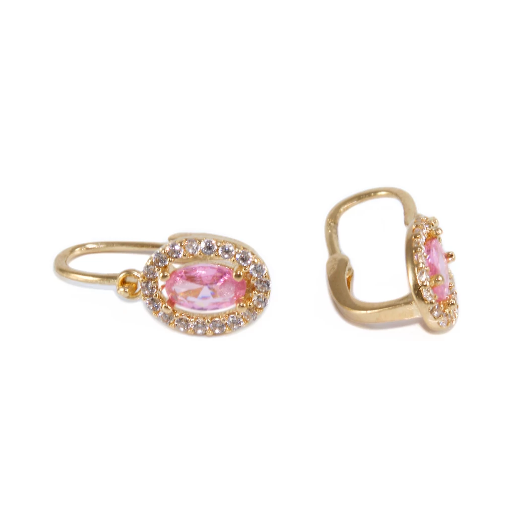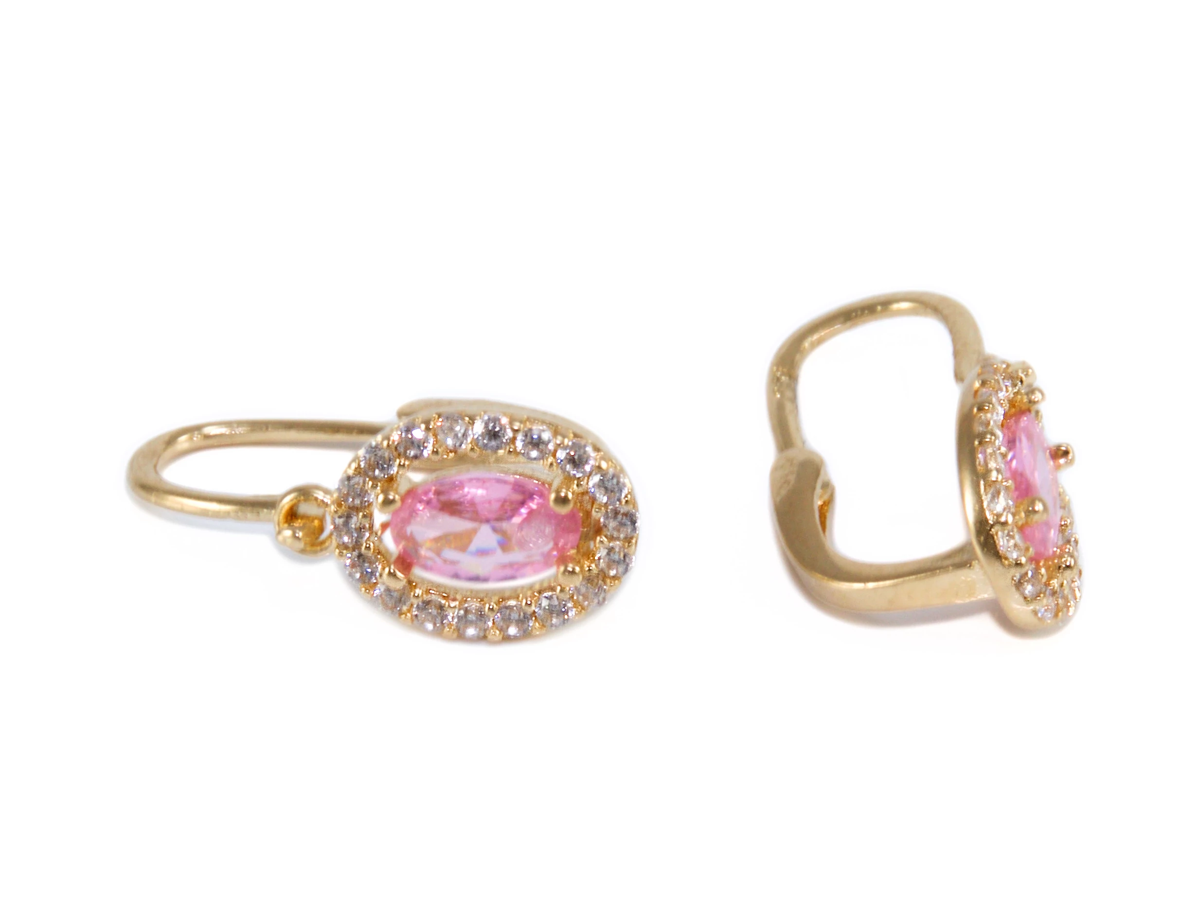 Rózsaszín-fehér köves ovális baba arany fülbevaló