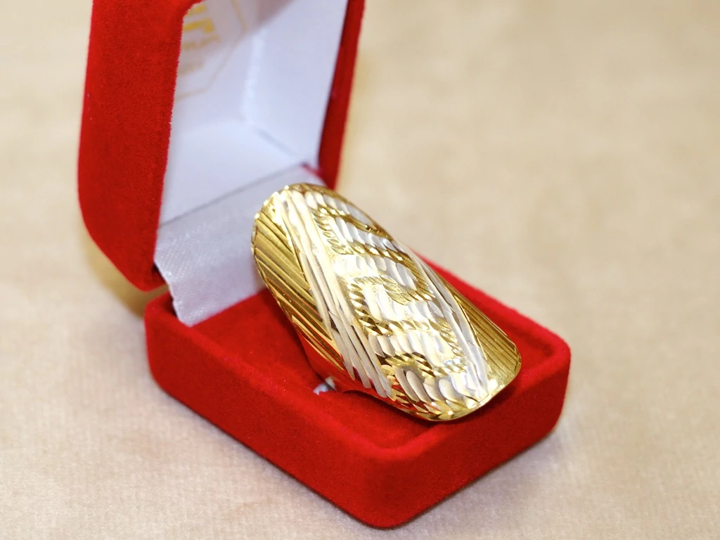 Új arany bicolor vésett koktél gyűrű