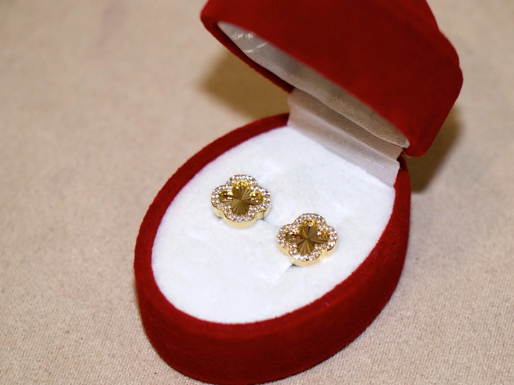 Új arany köves lóhere fülbevaló