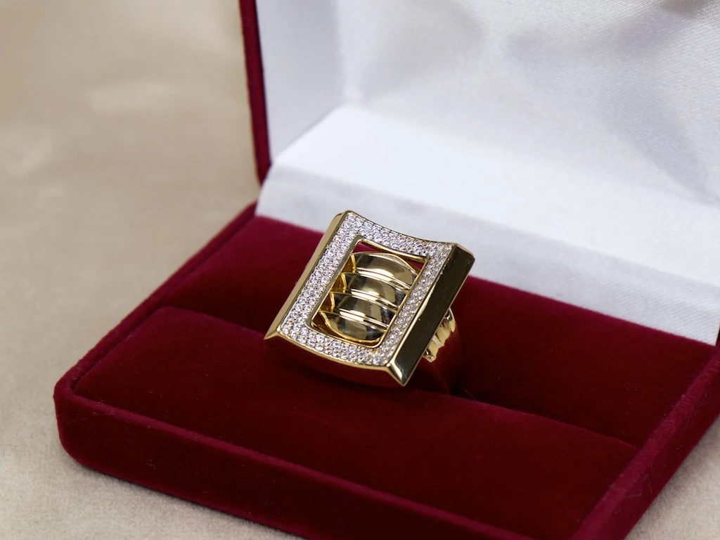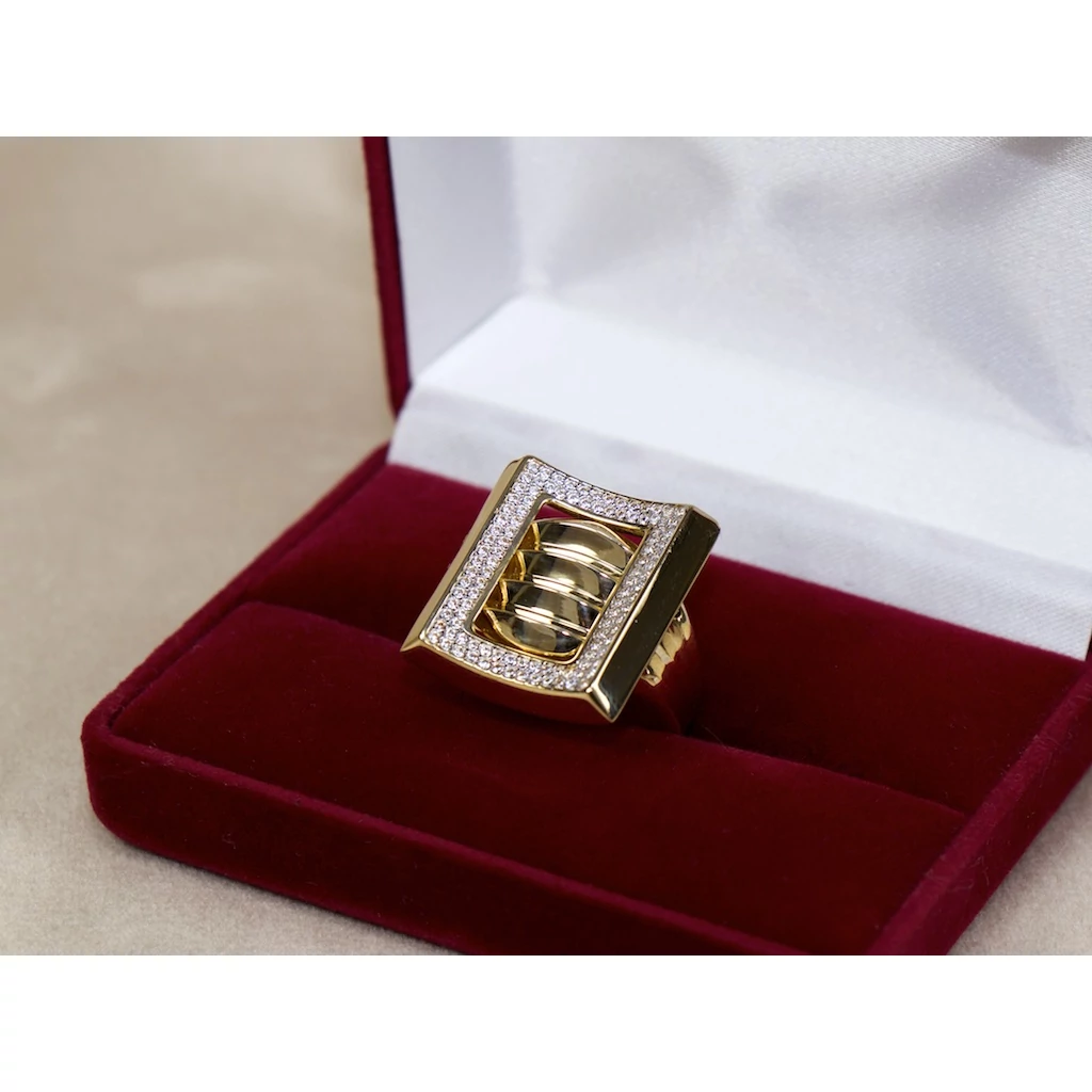 Új arany szögletes áttört gyűrű cirkóniakövekkel