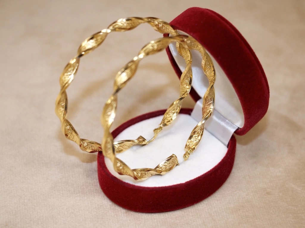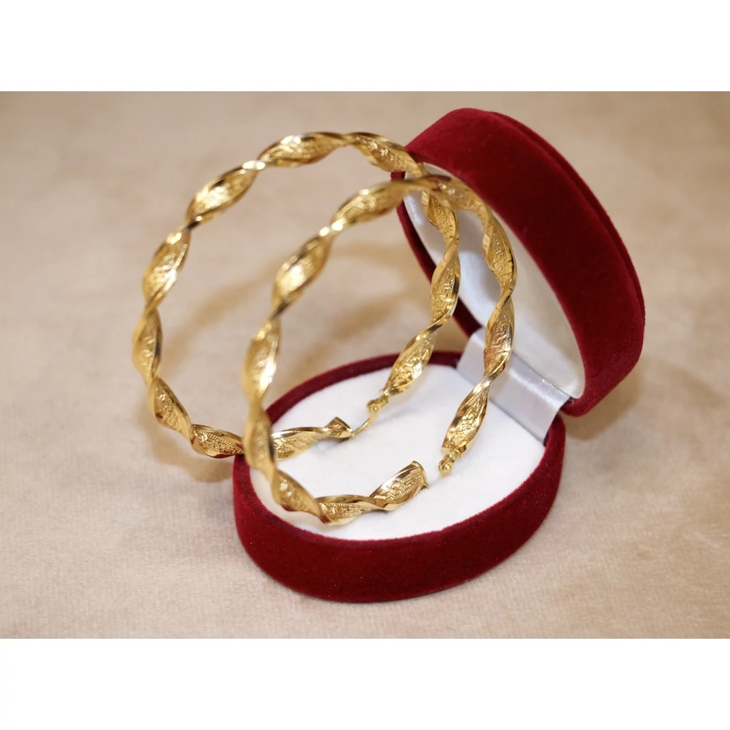 Új arany vésett csavart karika fülbevaló