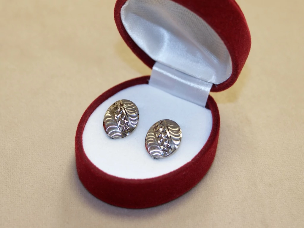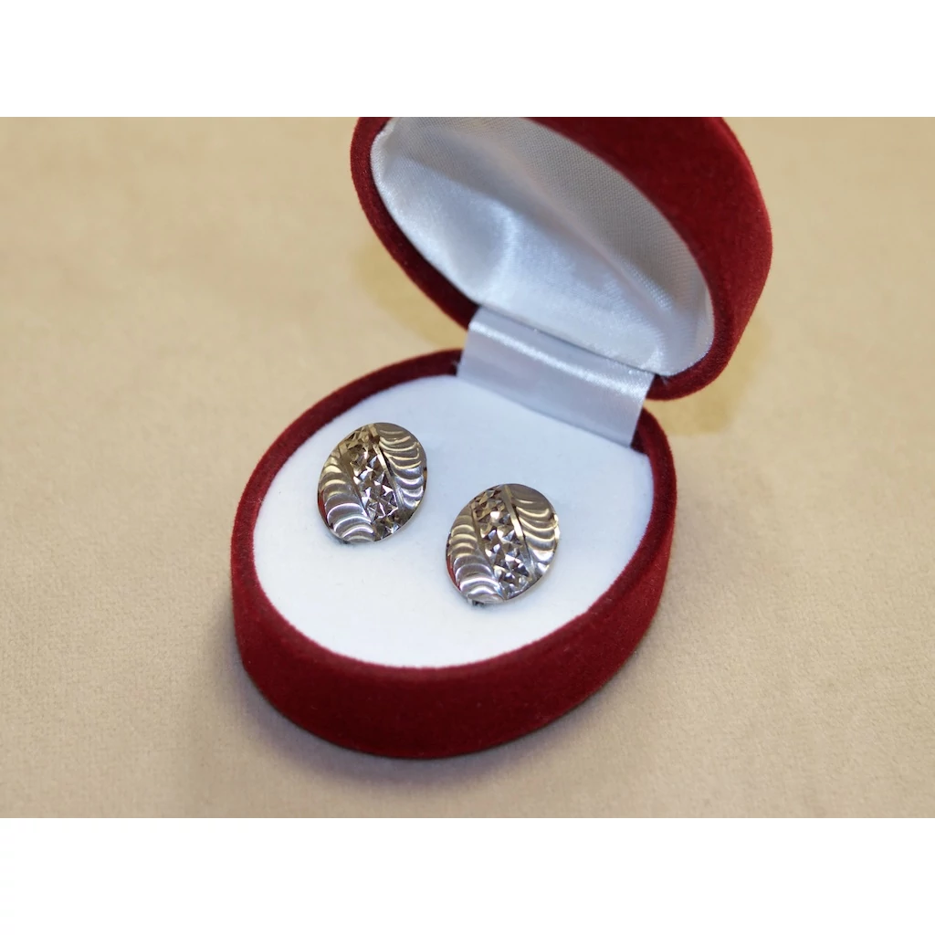 Új fehérarany ovál vésett fülbevaló
