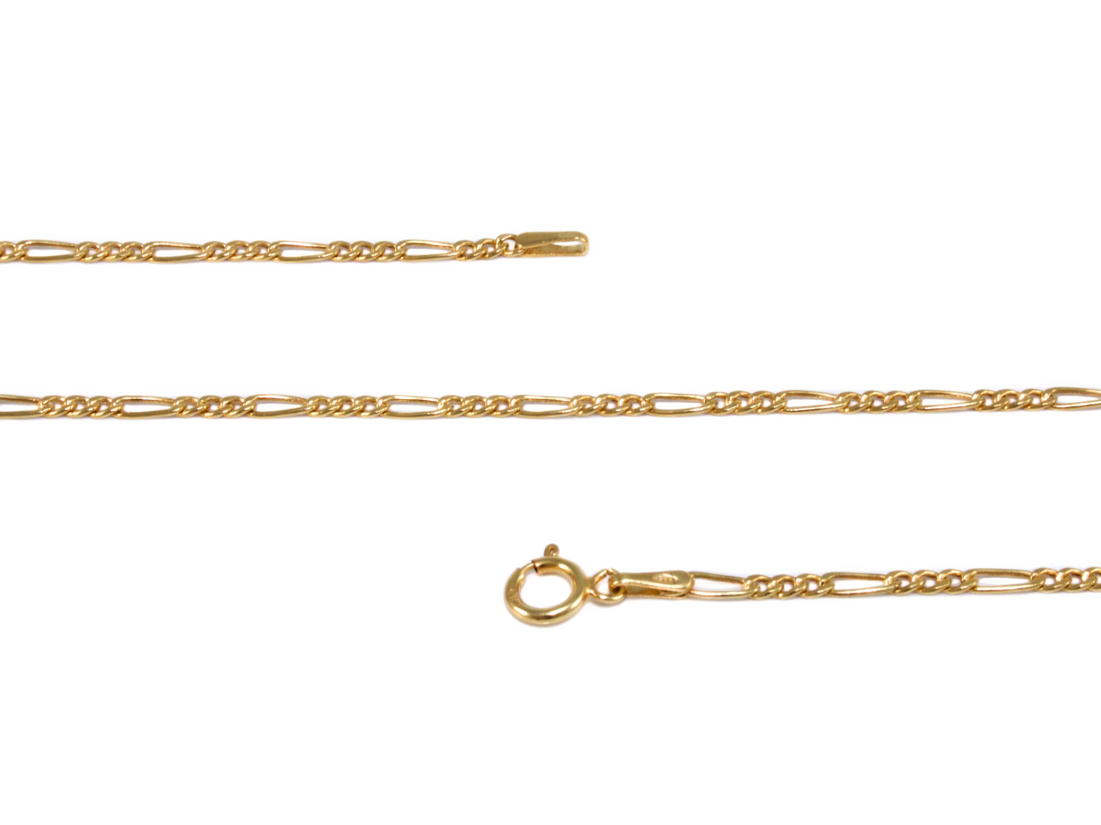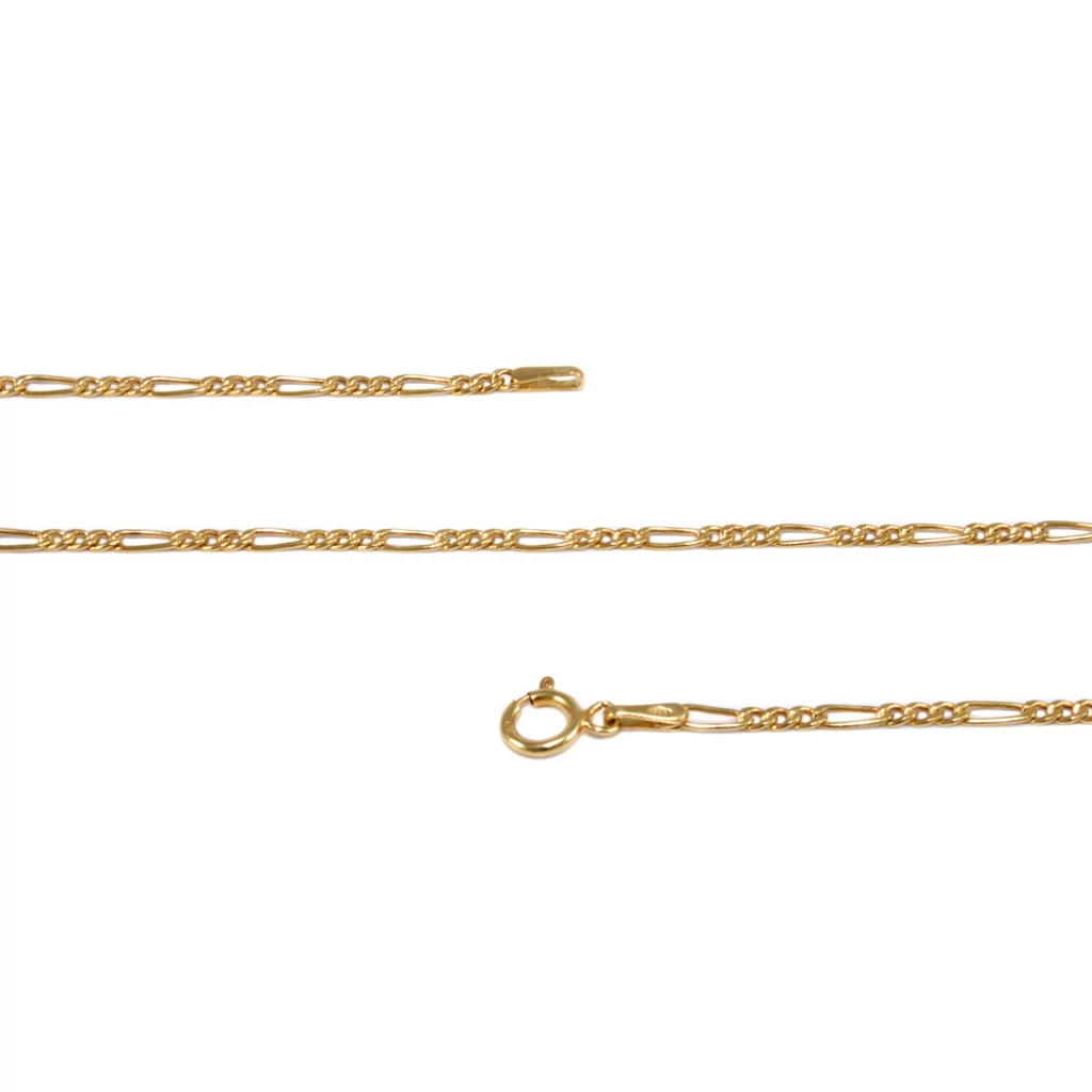 Kedvelt fazonú, vékony, 3+1 szemkötésű, "Figaró" típusú üreges szemekből készült aranylánc.