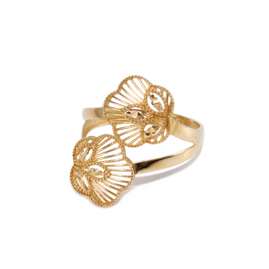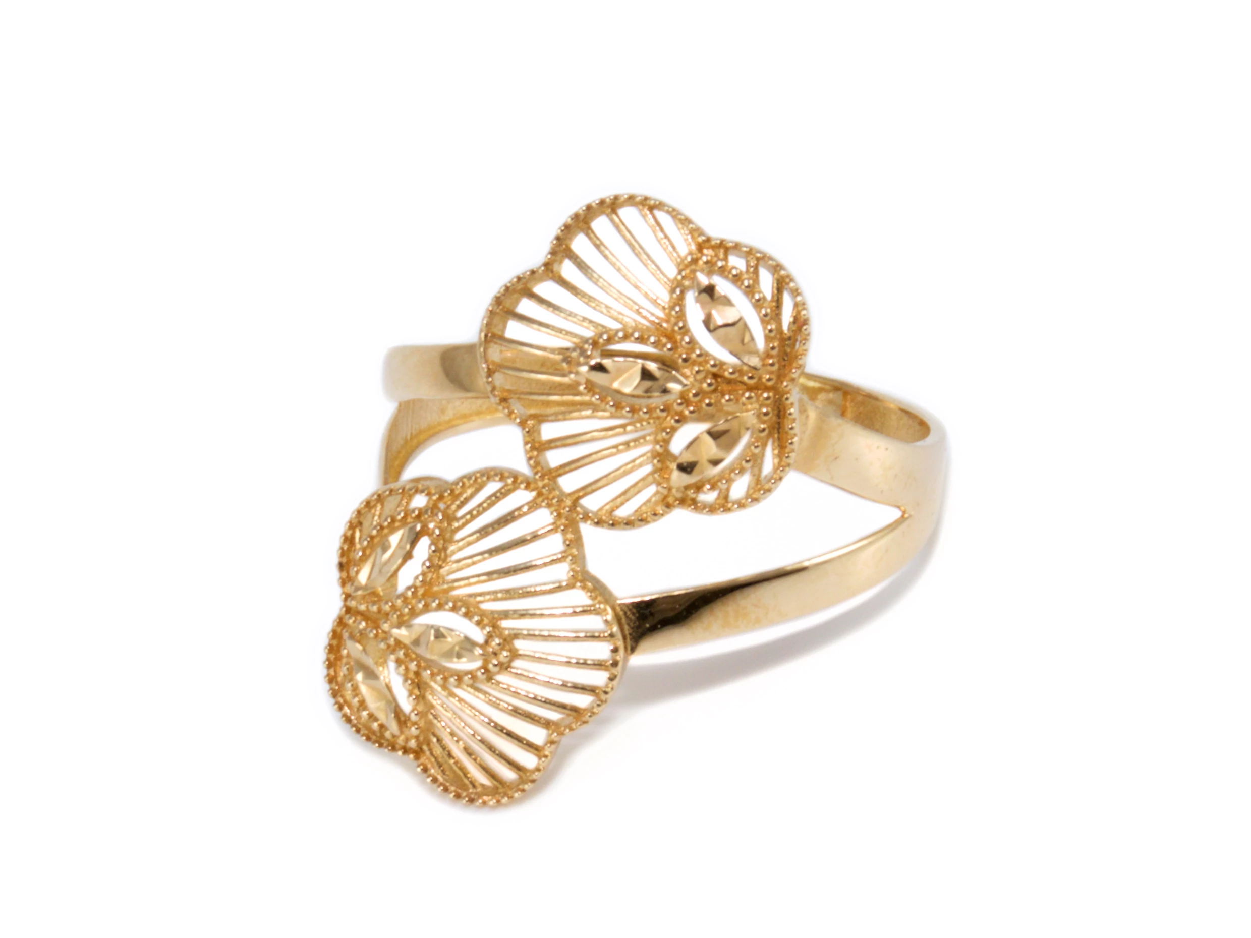 Modern stílusú, kedvelt fazonú, áttört kialakítású, vésett dupla virág aranygyűrű.